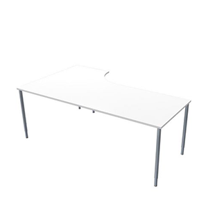 Här har vi en modell som sticker ut genom sin hörnformade skiva. Det är ett högerställt skrivbord som ger ett extra bra stöd för underarmarna, vilket är en fördel för den som skriver mycket. Just den här varianten är manuellt justerbar i höjd vid montering, vilket gör att det står extremt stadigt, men den går inte att justera upp och ner när man vill. Laminatskivan är av hög kvalitet och den grå basen ger ett professionellt intryck. Det passar utmärkt i miljöer där man inte behöver ändra höjden flera gånger om dagen, men kanske inte på kontor där du ska arbeta hela dagen.